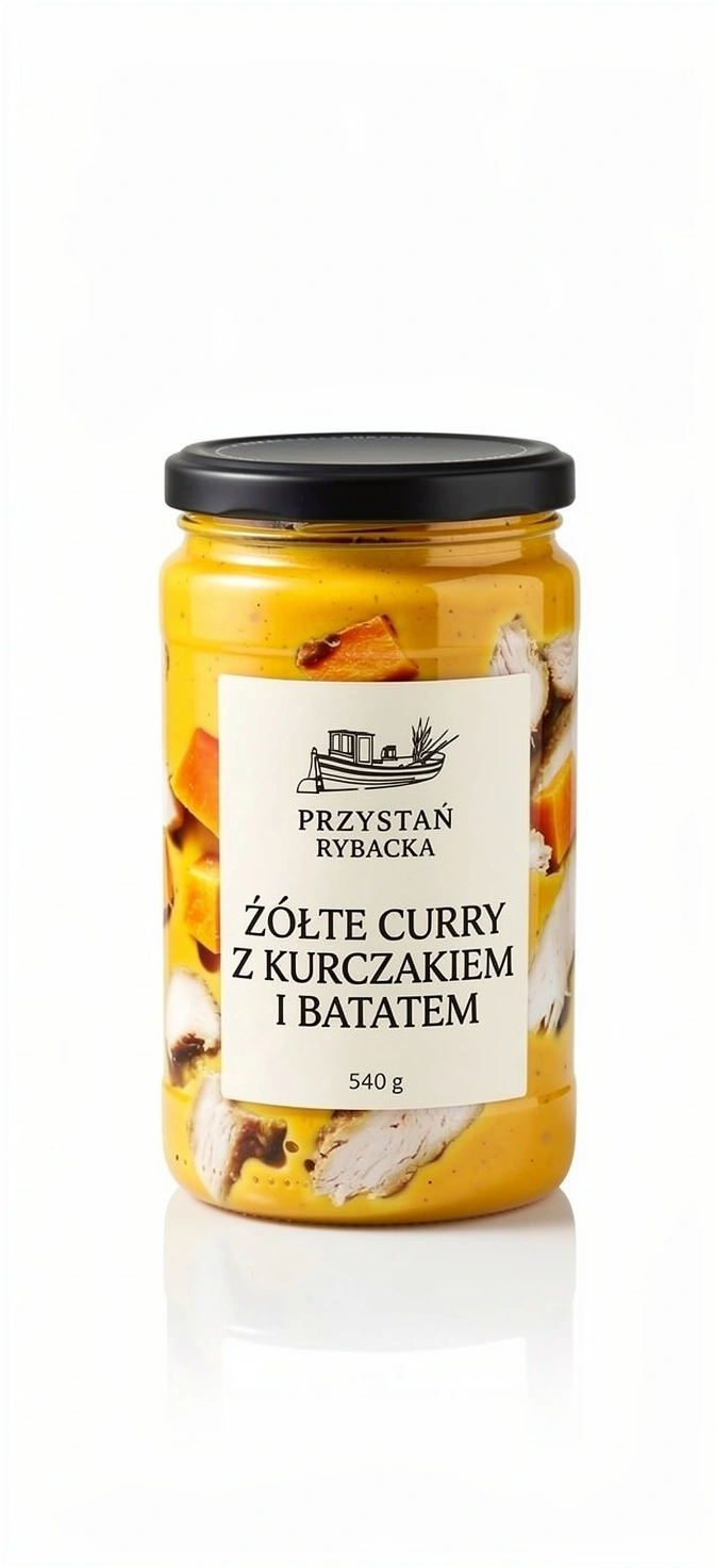 To danie, które zachwyca kremowością i słodyczą warzyw. Podstawą jest mleczko kokosowe, które starannie łączymy z miękkim kurczakiem, kawałkami batata i aromatyczną żółtą pastą curry. Wszystko to pasteryzujemy w słoikach, aby zachować słoneczny kolor i aksamitny sos bez użycia ani jednego grama chemii.